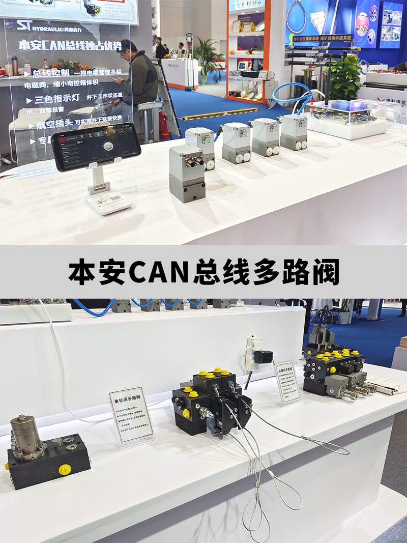 我们展出了全系列搭载本安CAN总线电磁铁的多路阀产品,并为现场客户进行了本安CAN总线控制系统的演示,在布线简化、远程操控及运维效率上实现了创新性突破。